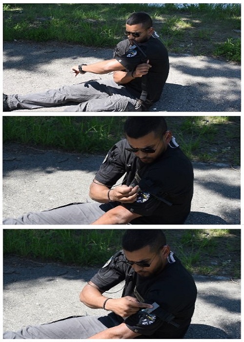 • Nach dem Anlegen um die betroffene Extremität, den Gurt des TQ fest vorstraffen bzw. fest anziehen, damit der TQ fest vorgespannt wird. Das richtige Vorspannen ist sehr wichtig, um in Folge die Blutung schnellstmöglich zu stoppen.